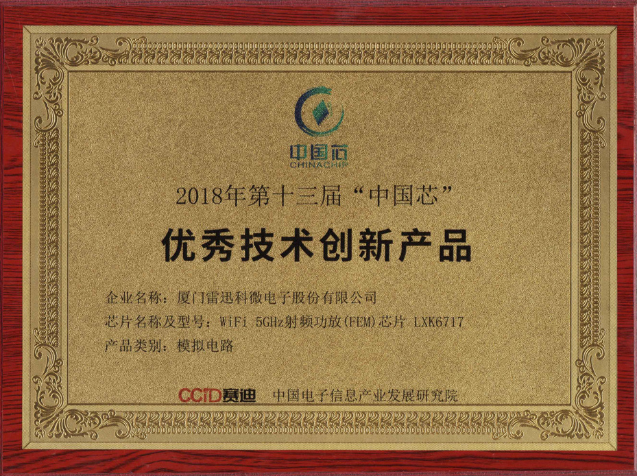 雷迅科公司W(wǎng)IFI 11AC射頻芯片LXK6717獲得2018年第十三屆“中國(guó)芯”優(yōu)秀技術(shù)創(chuàng)新產(chǎn)品獎(jiǎng)。